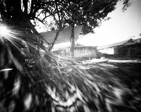 In einen dunklen Raum in Naha, im Regenwald der mexikanischen Selva Lacandona, Mexiko, in den Licht einfällt, bildet sich die Welt von außen, innen auf dem Kopf stehend ab und bewegt sich. Eine natürliche camera obscura entsteht. Diese Welt von außen habe ich in black box in einem Haus aufgenommen und zeige in einer Projektion die bewegten Bilder im Loop.